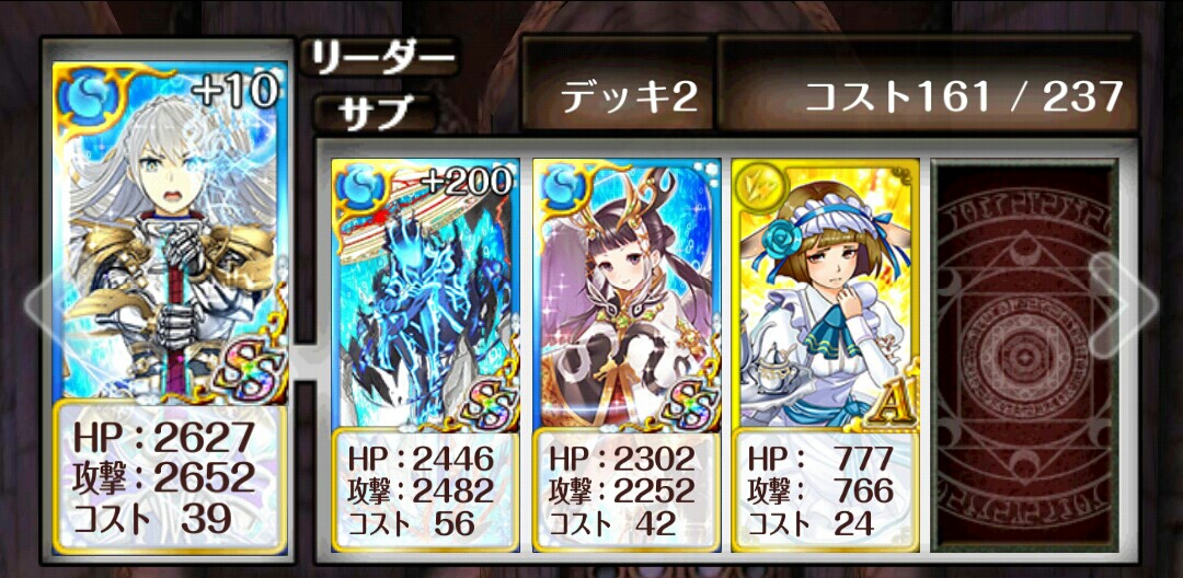 エタクロ2 過去級 サブクエ一発抜きルドヴィカ(ASエンハンス・SSエンハンス)フル覚バシレイデ(AS体力8割以下エンハンス・SSダメブロ)フル覚+200ロドム(ASエンハンス・SS全体回復)2覚白エイミー(ASエンハンス・SS状態回復)LV1助っ人ルドヴィカたぶん何でも良い -----1戦目適当に突破2戦目忘れた+画像3戦目かも中央から?普通に戦えば全体攻撃でエイミーと助っ人交替3戦目忘れたけど手間取った記憶がないボス左右倒して中央だった気がする敵の行動前にバシレイデSS怒る前なら防げる [0回]PR