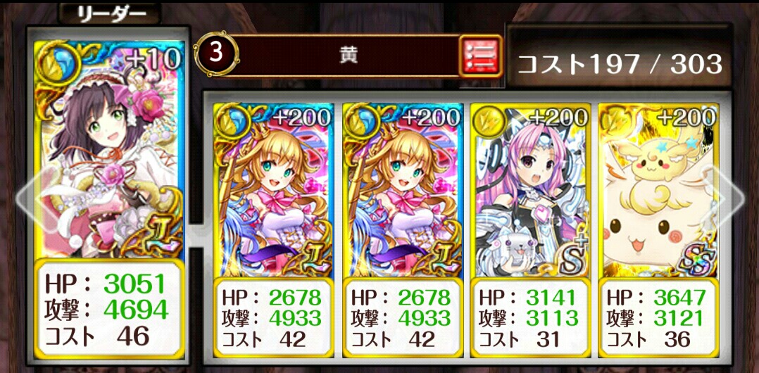 ディートリヒ軍ハード3-2 サブクエ3枚抜き新ミコト(AS5ch連撃・SS全体攻撃)フル覚+10リミーラ(AS3ch連撃・SS削り)フル覚+200リミーラアフロディテ(AS回復・SS状態回復)フル覚+200ラパパ(ASエンハ・SS単体遅延)フル覚+200助っ人はリミーラのHPをなるべく上げられる子 つづきはこちら [0回]