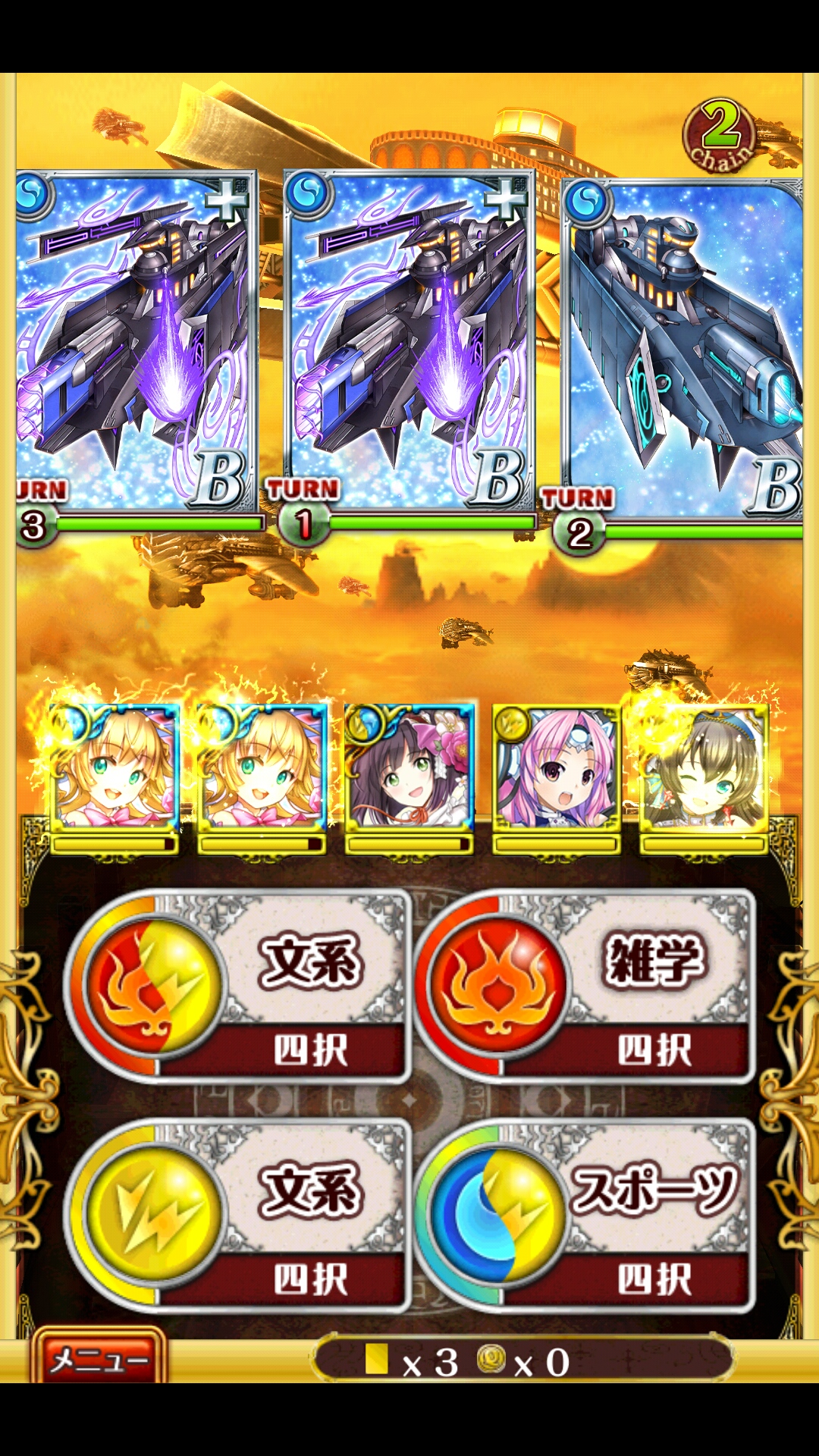 ディートリヒ軍ハード3-1 サブクエ3枚抜きヒミカ(AS種族特攻・SS見破り)フル覚+200ヒミカリミーラ(AS3ch連撃・SS削り)フル覚+200アフロディテ(AS回復・SS状態回復)フル覚+200イツニコ(AS回復・SS水軽減)フル覚 -----1戦目左が2T後に死の秒針、右はSP封印(1T)と1800×3体順番は左右削りパネルがあるなら死の秒針前に倒せるけど倒せなくてもまぁ-----道中-----左が死の秒針右はチェイン解除と全体1000順番は左右左はチェイン解除と全体1000中はSP封印(1T)と2000〜2400×3体右はたぶん死の秒針順番は右中左中がSS封印3T、左はたぶん死の秒針死の秒針くらった状態で遭遇したら残り4Tないと回復が間に合わない4T以下なら前戦で回復しとく左はたぶん死の秒針中はチェイン解除と全体1000右は属性特攻6000↑順番は左右中だけど左を2T、右をそこから2T内に倒さないと死人が出る倒せるかもだけどリタイアで良さそう左は3500、中はディスチャージ、右は毒と全体攻撃遅延なしで左ワンパンがまず無理遭遇したら迷わずリタイア-----ボス-----左は毒500と全体1000、中はディスチャージと3500×3体右は死の秒針(4T、実質3T)と全体400中を開幕から7T目、右を開幕から5T目に倒せないとまず死人が出る順当に右から殴ればたぶん平気だったはず [2回]PR
