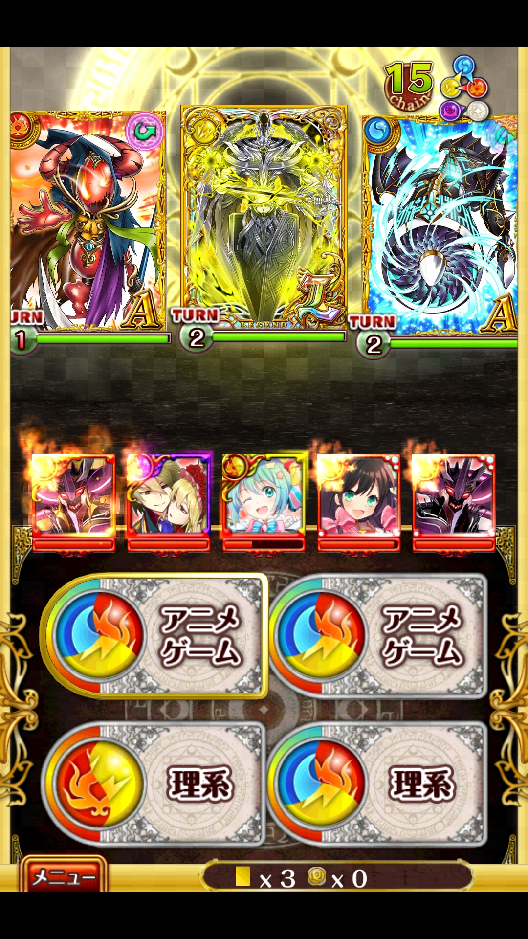 テネブル 冥滅級 終焉(AS5ch連撃・SS自傷全体攻撃)フル覚+200ディール(AS回復・SS変換)フル覚マジシャンミク(AS回復・SS単体遅延)フル覚キシャラ(AS3chエンハ・SS状態回復)フル覚+90SS終焉(AS5ch連撃・SS自傷全体攻撃)フル覚+200助っ人は全体回復SSか、単体威力のあるSS持ってるアタッカー -----1戦目右左中ミクはレジェンド入りしなくても良い2戦目右へ遅延かけて右を1T一発殴られてからキシャラSSで回復そのあと右左中普通に進めてれば抜ける頃にミクのSSが溜まる攻撃が偏ると誰か落ちるけど、だいたい平気3戦目中へ遅延終焉を中、残りを右へターゲット中を倒したら終焉は左へ攻撃が偏ると誰か落ちるけど、だいたい平気ボス終焉→キシャラ→終焉でSS、2T殴って終了 [0回]PR
