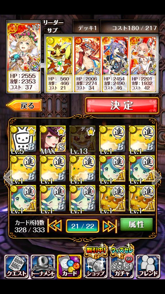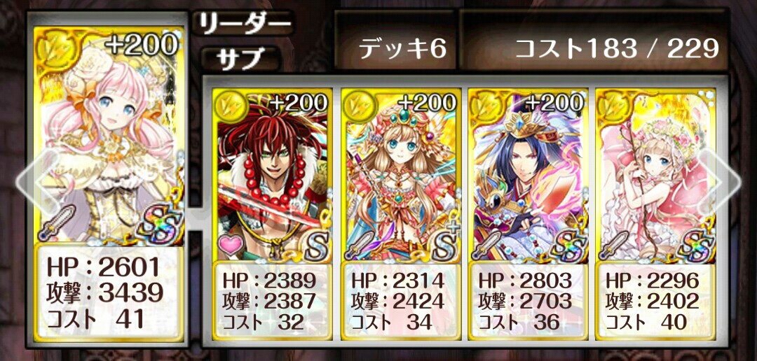 スビェート 別デッキ グレイス(AS回復・SS状態回復)フル覚フェイ(AS回復・SS全体回復)フル覚白猫(AS属性加護+パネル色攻撃・SS3色変換)フル覚+200セリナ(ASエンハンス・SS毒)2覚アニマ(AS回復・SS遅延)フル覚助っ人はリヴェータ15枠の人のデッキ大半のパクり構成運が良くてノーコンできたけど基本は1コン周回はまだきついから初回報酬もらうだけのデッキ つづきはこちら [0回]