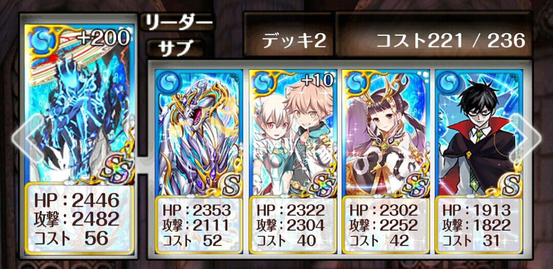 エターナルクロノス 絶級 サブクエ3体以下サーシャ(AS3ch攻撃・SS全体攻撃)フル覚+200ソラナ(AS属性加護・SS青黄変換)育成途中チェルシー(AS回復・SS遅延)フル覚ファム(AS水特攻・SS遅延)2覚グレイス(AS回復・SS状態回復)フル覚助っ人たぶんフレイあたりファムはレラとかでも良かったかも25T以下+ノーデス+周回バシレイデ(AS体力8割以下エンハンス・SSダメブロ)フル覚+200ラギカ(AS全体攻撃・SS見破り)フル覚ダリガラ(ASエンハンス・SSスキチャ)フル覚ロドム(ASエンハンス・SS全体回復)2覚スタズ(ASエンハンス・SS変換)フル覚助っ人は何でも良い つづきはこちら [0回]PR