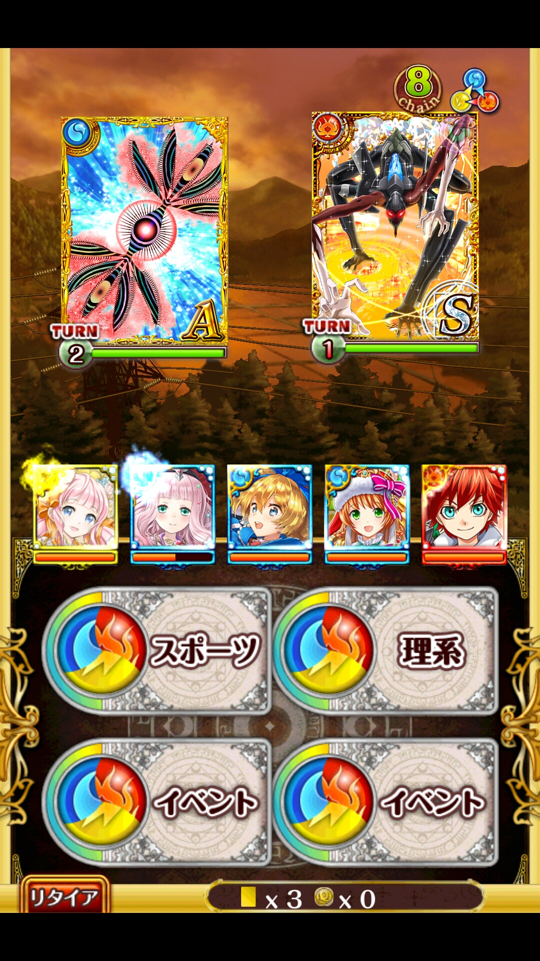 エヴァ封 侵食級 水抜き赤単グレイス(AS回復・SS状態回復)フル覚白猫(属性加護+パネル色攻撃・SS3色変換)フル覚+200アモン(AS火属性特攻・SS赤軽減)4覚アニマ(AS回復・SS遅延)フル覚黒リヴェ(AS戦士エンハ・SS全体攻撃)フル覚+200助っ人プラーミャとかリヴェータとかアカリとか1属性3体以下ファム(AS水属性特攻・SS遅延)フル覚+200ソラナ(AS属性加護・SS水雷変換)覚醒0、レベル低めチュレ(AS3チェインエンハ・SS全体攻撃)フル覚+200クリベルナ(AS回復・SS状態回復)フル覚白猫(AS属性加護+パネル色攻撃・SS3色変換)フル覚+200助っ人ルドヴィカとか正月ハヅキとか -----1戦目中左右赤単:普通に殴ると3Tだから、追加で1問稼いで突破2問だったかも青3体:真ん中から普通に撃破2戦目毒くらうからワンパンで突破赤単:全員左、アモンだけ右にターゲット青3体:ソラナで1匹、残り2人で1匹でOK3戦目中左右赤単:黒リヴェSS発動、何も考えずに殴り続けるパネル踏めるなら死人は出ないはず青3体:チュレSS使用白猫の変換を使用、3色パネルで総攻撃ファムは左、残りは中央3Tのノーダメ突破ボス右左赤単:開幕にアニマで自爆遅延して殴り続ける攻撃くらうと壊滅するから助っ人の遅延やSSはガンガン使ってく踏み続ければ壊滅前に右は倒せるから残りの左に手間取らされなければ終了青3体:開幕にファムで自爆遅延して殴るパネル踏めれば行動前に右は倒せる万一間に合わないならクリベルナSSで足掻く [0回]PR