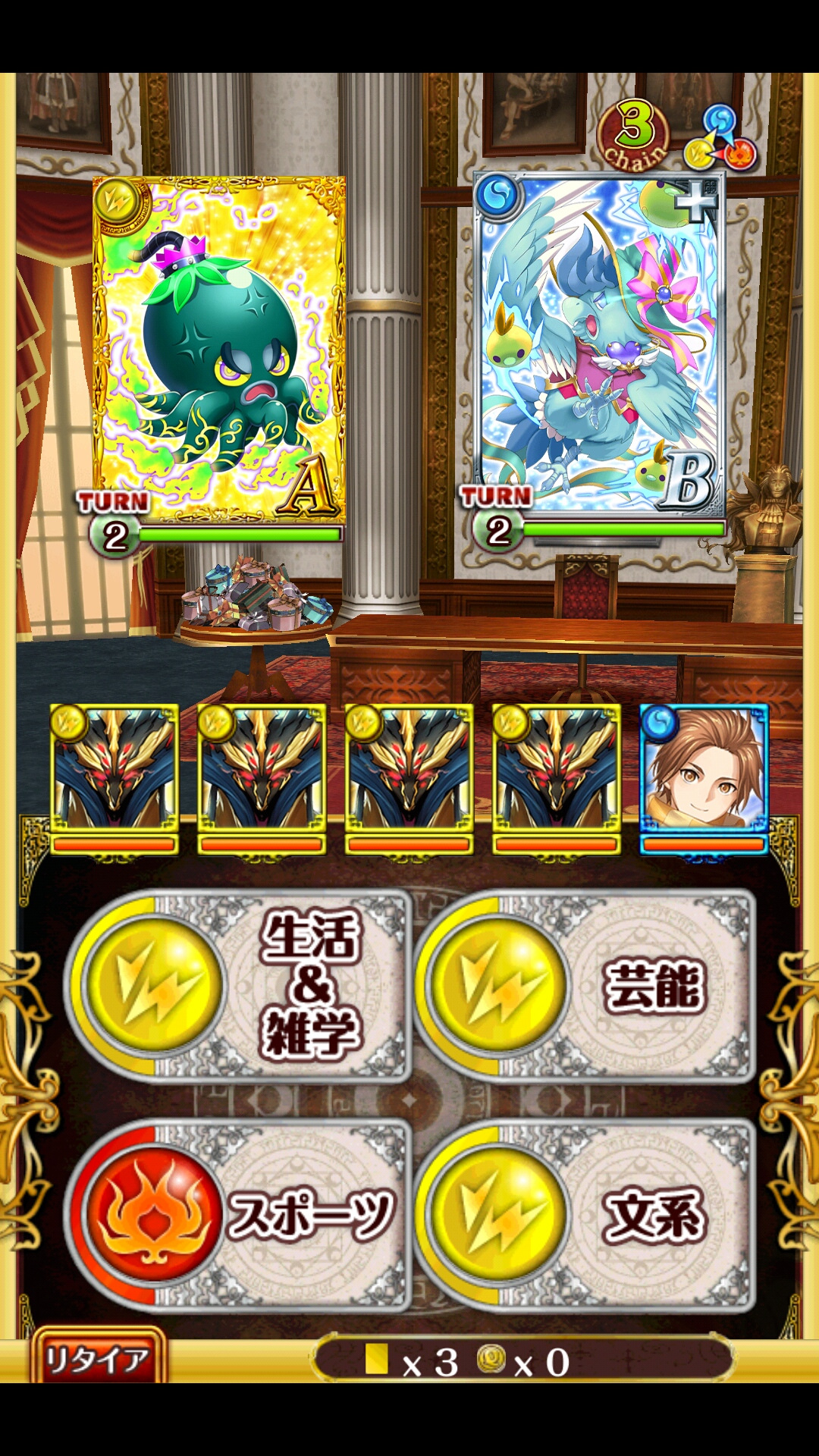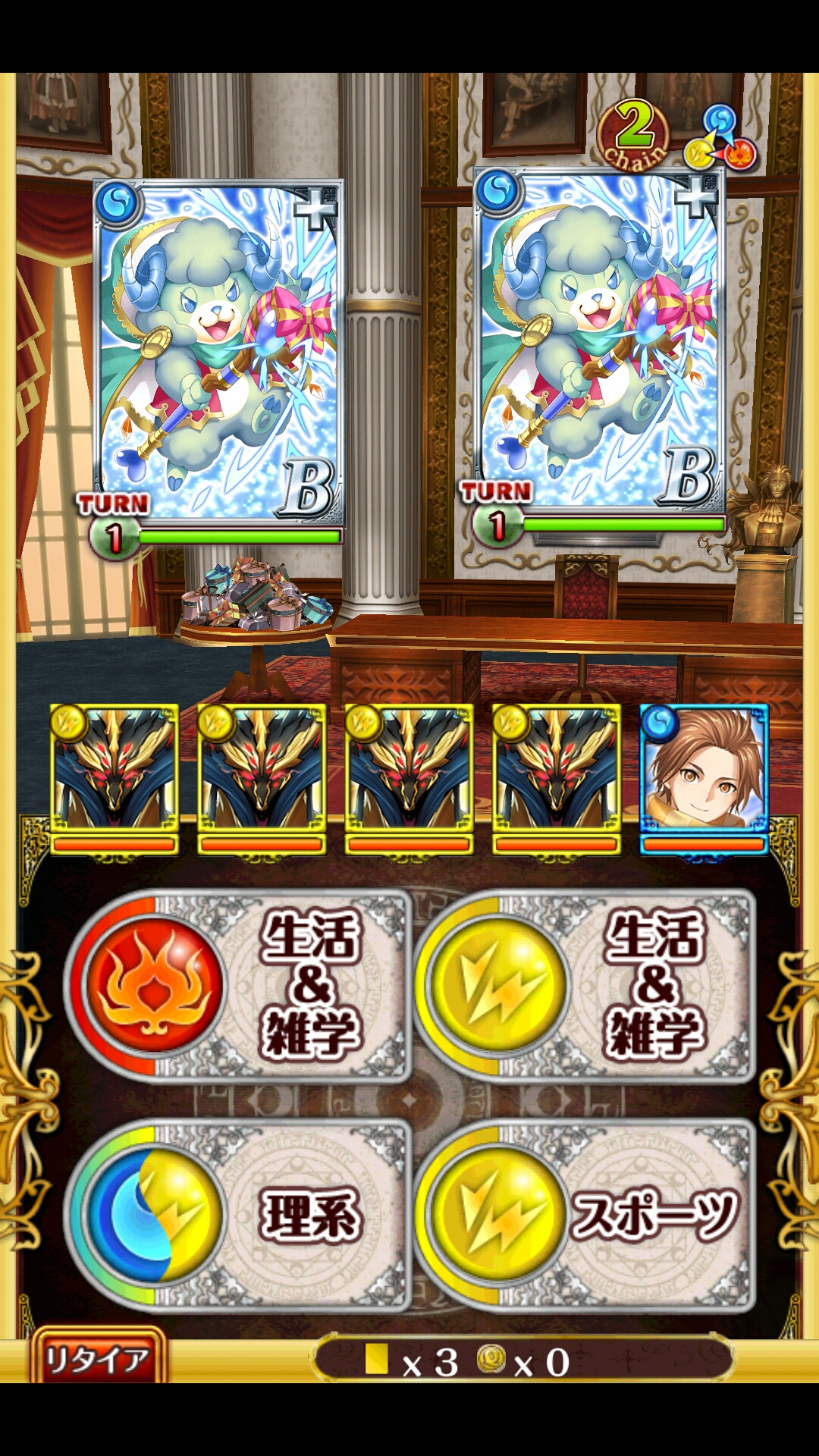 クロムマグナ4 ショコラ級 ブラフモ(AS魔族エンハンス・SS全体攻撃)フル覚+200バレイツキ※LV1助っ人ファムあたり、適当 -----1戦目1問踏んでから1枚黄色踏んで突破2Tで力溜め→2Tで単体攻撃だから複色処理しても可2戦目何も考えずにワンパン突破3戦目左右左右それぞれ1Tで倒せるベストは左を倒す→右の弱体化・全体攻撃でイツキと助っ人を交替するのがベストパネルが来すぎてると無理だから固執しないボス3戦目で交替してるなら開幕に遅延含め全員SSぶっぱ交替してなくてもブラフモSSぶっぱダンケルはSS1回+攻撃で怒るからパネル踏めれば絶対怒る通常時1T目と怒り1T目は全体50%削りだけど2回削られると次の怒り全体攻撃で全滅するから注意パネルないなら怒る前にパネル整理しとくなり適当に [0回]PR
