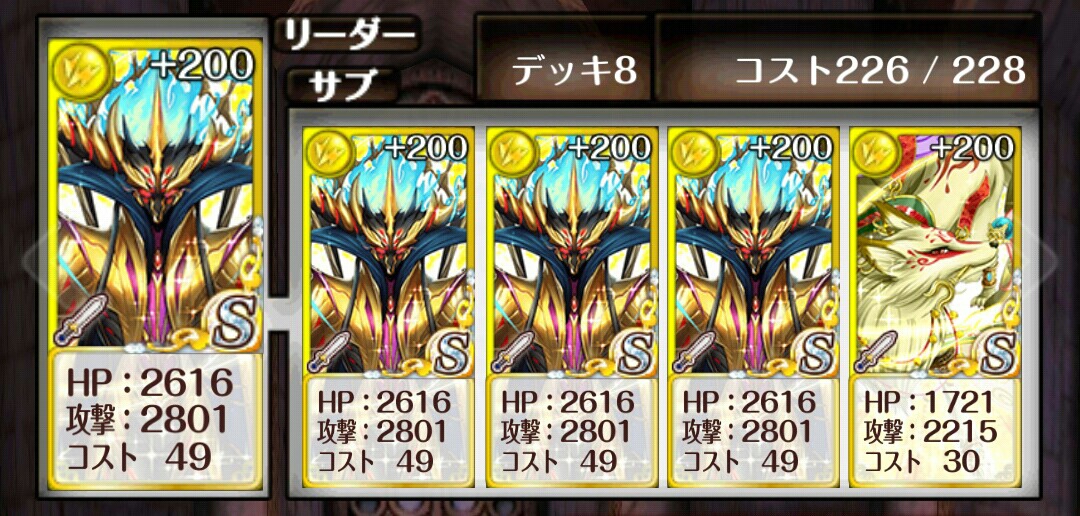 8・9段 8・9段のメモデッキ一緒だから統一 -----全員フル覚醒+200ブラフモ(AS魔族エンハンス・SS全体攻撃)オモテ(AS3連撃・SS黄変換)8段赤赤のときはきちんとブラフモを2体ずつターゲット道中オール1Tボスは赤にタゲ→ブラフモSS最速6T安定9段赤赤だと2Tそれ以外は青か黄にブラフモ1人とオモテを割り振って1TボスはブラフモSS撃ってアレク総攻撃2T殴ったらあとはオモテに任せてルシェ最速9Tのだいたい10T8段はまず1位9段は運が悪いと9Tで埋まって枠外になる上がるだけなら楽 [0回]PR