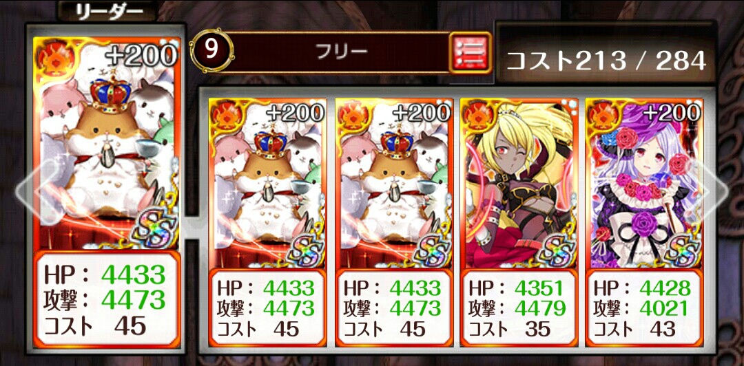 ザラジュラム 下のやつ サブクエ3枚抜きプチニーミ(AS種族数攻撃・SS見破り)フル覚+200プチニーミプチニーミクラッツィナ(AS雷特攻・SS変換)フル覚ヴェレッド(AS回復・SSリジェネ)フル覚+2001戦目は適当に2戦目は右中左3戦目は中左右ボスは右左中完全に脳死 [0回]