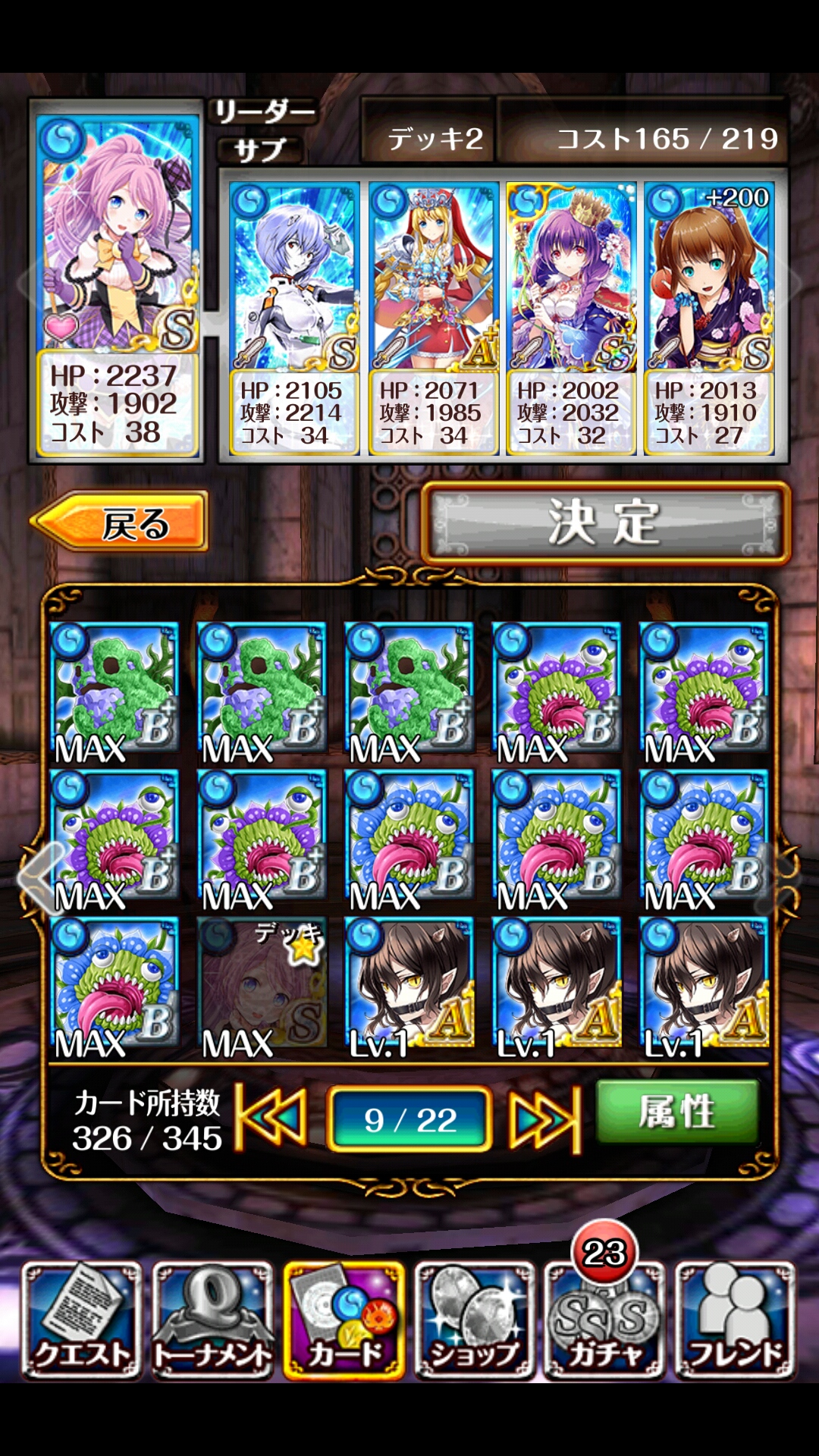 アスモ別デッキ 手持ち増加でデッキ変更アイスの実(ASエンハンス・SS水軽減)7覚レイ(AS快調・SS挑発)フル覚ベルナデッタ(AS回復・SS回復)A+チェルシー(AS回復・SS遅延)フル覚アーシア(AS回復・SS変換)1覚+200助っ人はフレイとかの遅延キャラヒサメだと安定感上がる -----1戦目右→左→中アーシアの変換が溜まったら嬉しいけど別に溜まってなくてもそれはそれで良い2戦目左→右封印中に死なないようにパネルを回す右はだいたい3Tで倒せる特にスキル使わなくても突破可能最低チェルシーの遅延が残り2TになってればOK3戦目順番は左→右→中開幕にチェルシー遅延左と中の遅延が切れるターンでレイの挑発を使って助っ人とレイを交替して左を殴り続ける(九死発動したら回復せず右の削りを食らえば助っ人交替、回復間に合ったら正解取ってれば次の力溜めで挑発が使える)力溜め2回の前に倒さないといけないけど開幕に遅延しないと火力足りない左を倒すのがそんなに余裕ないからパネル調整はあんま考えず、遅延も使ってとにかく殴る左を倒せたら、遅延・軽減・回復のどれかはストックできるように回しながら右と中を倒す最低でも遅延が残り3Tで撃てるようにして突破ボス戦順番は右→左→中弱体化を食らったら遅延かけて殴り続ける以降、弱体化のタイミングで遅延か軽減(できれば回復とセット)を使えるようにSSとHP管理左も倒せると、回復と軽減を別で考えて管理できるようになるから楽 [0回]PR