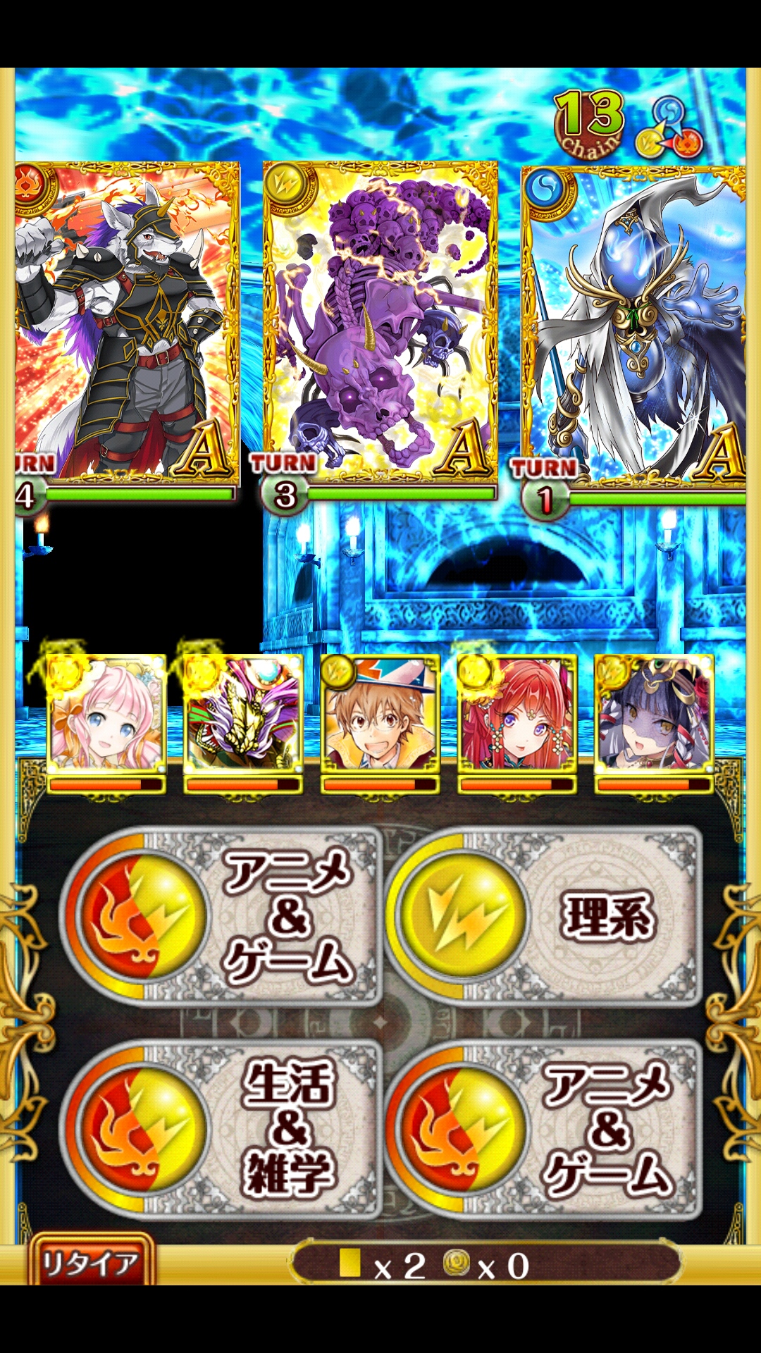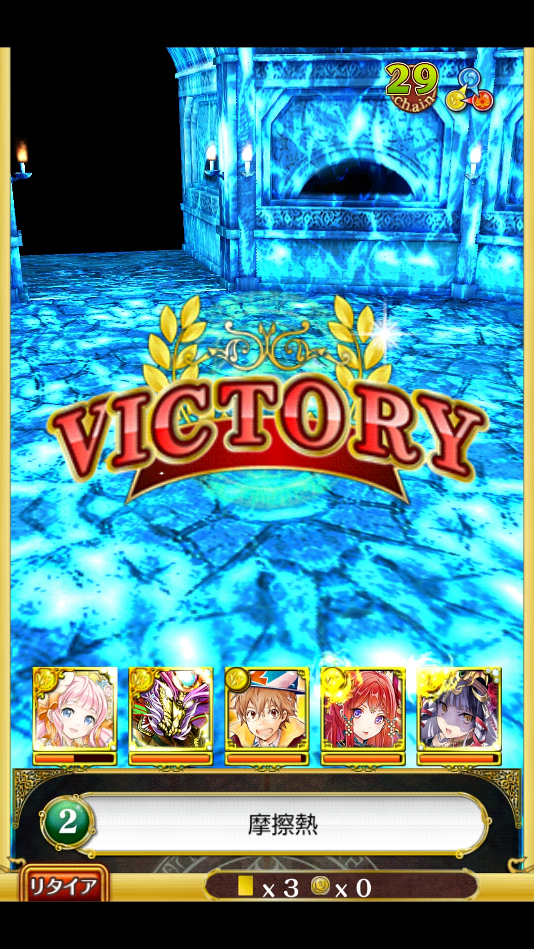 リュコス 別デッキ ファム(AS特攻・SS遅延)フル覚+200タケミカヅチ(AS8チェイン・SS単体攻撃)3覚+200識(AS複色攻撃アップ・SS見破り)フル覚トモエ(AS回復・SS変換)フル覚黒パッツァ(AS回復・SS見破り)フル覚助っ人はファムが安牌だけど何でもいい今までのより安定感も周回速度もアップとにかくチェインを切らさないことトモエは他でも良さそうだけど変換使うことあるし最後が結構HPギリギリになることあるからトモエで -----1戦目中央を2回殴るこのとき複色を使えば倒せるけど、倒せないほうが良いガード発動したら2回殴って中央処理、そのあとゆっくり左右4T凌げばパッツァのSSが使えるので最初の4Tが肝ミスってもそこまで惨事にはならない必ず8チェイン溜まった状態で抜ける2戦目ファム左、残りを右でワンパンしてから左に総攻撃そのあと右を殴れば行動前に倒せる全部単色だったり、ファムやタケミカヅチが低乱数だと少し怪しいかもしれないから、不安なら1枚は多色で識をブーストして殴る3戦目右にタケミカヅチSSそのあとファムとタケミカヅチは右、残りは左でワンパンあとは左を殴り続ければ行動前に倒せる1問は空踏みできそう中央は2Tで倒せる4戦目開幕遅延パネル状況が良いならファムだけ左で残りは右でタケミカヅチのSSも基本的には右止まらなければどちらも行動前に倒せる最悪でも左は仕留めることガードを発動させてしまったら遅延がたまり次第使って、ガードの切れ目に殴るリュコス自体は6Tくらいで倒せるスムーズに行くと29〜33Tくらい乱数次第のところではあるけど少なくとも道中の肝心な部分は崩れない [0回]PR