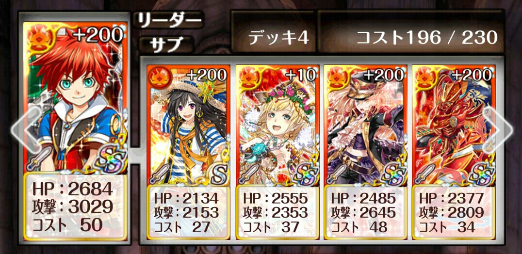 レイド歪狼 咆哮級 白猫(AS属性加護+パネル色攻撃・SS3色変換)フル覚+200夏アレク(AS回復・SS見破り)フル覚+200グレイス(AS回復・SS状態回復)フル覚黒リヴェ(AS戦士エンハ・SS全体攻撃)フル覚+200イグニス(AS攻撃・SS全体攻撃)フル覚+200パネブ5だから一応部屋建て可 つづきはこちら [0回]