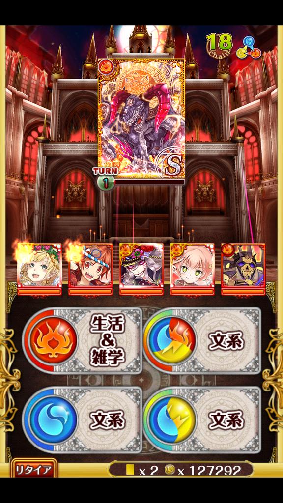 ロレンツィオ14 道中とボスが赤と黄なので赤デッキ 記憶違いでの間違いがあるかも ----- 14-1、14-3 グレイス(AS回復・SS回復)フル覚+10 ユアン(AS特攻・SS単体5連撃)フル覚+200 夏アキラ(AS特攻・SS赤黄変換)フル覚 アニマ(AS回復・SS遅延)フル覚 夏アレク(AS回復・SS見破り)3覚 14-2 夏アレクをイグニス(AS攻撃・SS攻撃・フル覚)に交替 14-4 グレイス(AS回復・SS回復)フル覚+10 夏アキラ(AS特攻・SS赤黄変換)フル覚 ユアン(AS特攻・SS単体5連撃)フル覚+200 アニマ(AS回復・SS遅延)フル覚 ゼノン(AS分散・SS赤青軽減)1覚 グレイスはフェイでもいけそう、無理ならSS回復早いキャラ 実質HP2100で耐えるけど、乱数次第でたぶん死ぬ 1戦目の黄サハギン・赤ハーピー: サハギン→ハーピー 道中: コカトリス→サハギン→ハーピー→ファントム 黄→赤 黄ハーピー×2と赤コカトリス: 両サイドのハーピー→赤コカトリス 赤ハーピー・黄コカトリス・赤サハギン: コカトリス→サハギン→ハーピー 14-1と14-2のボスは適当に 14-3ボスはコカトリス→蜂→ファントム 14-4ボス: 3Tサイクル 力溜め→殴る(全体4000)→殴る(全体2000)→力溜め(?) HP6割くらいで怒る、怒ったあとは力溜めが消えるだけ 軽減→2T以内に殴りで両サイドを倒す 被弾後に遅延→AS回復で全快→通常攻撃を被弾 SS回復とAS回復で全快→通常攻撃を被弾 AS回復で全快→このへんで怒る→軽減→回復 で終了 軽減→遅延→回復→軽減 でスキルを回せるはず [0回]PR