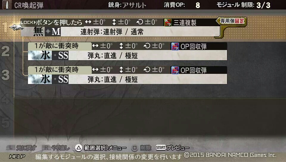 GE2RB自作バレット(アサルト) 覚え書き手近な場所だったのでここでBR中心、神機暴走率は目標410%以上節約トリハピ前提 -----■狙撃弾OP8、貫通100喚起率重視でヒット数増やしてあるバースト3で捕食とか他のことしてればOP切れない■狙撃爆破弾OP6、貫通5・破砕54 合計59外さなければバーストなしでもOP切れない■狙撃放射・長距離弾OP29、貫通5・破砕120 合計125暇な時に撃つ銃破弾あと遠くで止まってるアラガミ振り向かせる弾距離と方向が合ってる場合の最長射程-----BR用バレット-----■BR貫通弾OP66、貫通395ほぼ無識別だから誤射に注意実質ヴァジュラあたりしか出番がないし着弾が遅すぎるデルタアストレイのほうが良いかも※拾い物デルタアストレイOP38、貫通323■BR爆破弾OP111、貫通5・破砕520 合計525BR時はほぼこっち使う距離が近いとダメージが落ちるから適宜下がる気休めで後ろにいるアラガミにも少し当たる-----補助バレット-----■直線回復放射OP52〜、回復30なるべく高さを合わせて撃つふんばり圏内にしたいなら2連打■OP・喚起率回収OP8戦闘中はあんまり使わない喚起率目的ならクリティカルさせれないなら撃たなくて良い■モグラ弾OP10壁の向こうとか少し離れたとこに止まってる相手を気付かせる用バレット煉獄の地下街右下から対岸くらいなら届く [0回]PR